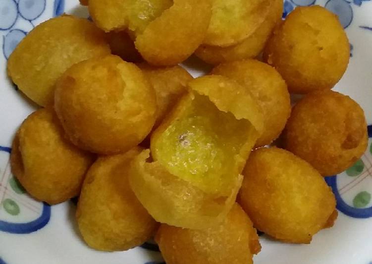 - Goreng menggunakan api kecil,dalam proses menggoreng ini harus benar,agar menghasilkan bola ubi yg kopong..