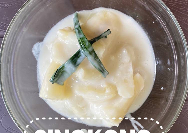 - Kupas singkong dari kulitnya, cuci bersih kemudian dipotong2 lalu rebus hingga empuk.