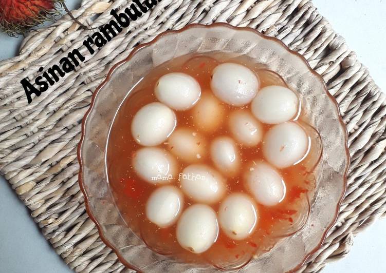 Rambutan pada akhir minggu ini menjadi trand di jalangan pecinta manisan ataupun di buat rujak. Resep asinan dari rambutan yang segar ini bisa anda jadikan pilihan utama apabila ingin mengolah rambutan menjadi lebih nikmat. Nah, berikut ini kami hadirkan aneka resep asinan rambutan untuk anda. Kamu bisa memasak Asinan rambutan using 7 ingredients and 3 Langkah. Begini caranya capai itu.